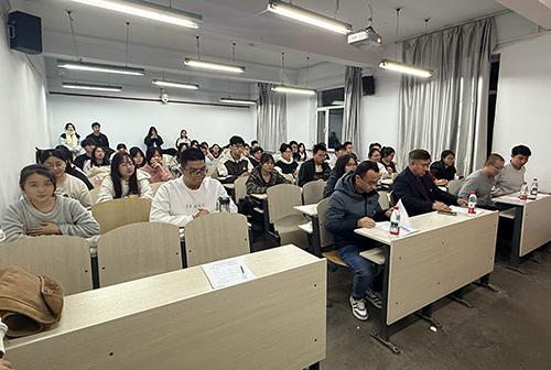 开班仪式结束后,第一讲正式开始。包国荣以《党章的修改历程》为题作专题阐述,阐明党在探索中前进的发展规律,并联系学风建设实际,号召全体同学筑牢信仰之基,将学习成果转化为推动专业进步的实干能力,以卓越的专业本领和过硬的政治素养践行时代使命。 期间,同学们认真听讲,积极记录笔记,课堂氛围良好。