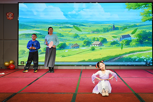 表彰的荣光未散,艺术的精彩接续登场。内蒙古艺术剧团独唱演员李佳悦带来《敕勒歌》《爱的地方》歌曲演绎,她的嗓音清亮辽阔,将敕勒川的苍茫雄浑与人间温情诠释得淋漓尽致,让听众仿佛置身敕勒川天高广阔、风吹草动的广袤天地。紧接着,苏家齐、杨艳平老师带来相声《水产“食”验员》,两人一捧一逗,用水产科研中的趣味日常编排成包袱,幽默的台词和生动的表演让现场笑声不断。