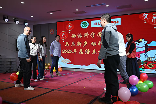 颁奖抽奖圆满收官,文艺汇演精彩不停。动物营养与饲料科学系唱响《我们走在大路上》,激昂的节奏、洪亮的歌声,尽显动科人一往无前的奋进姿态。智慧养殖与动物生产系献上的《相亲相爱一家人》,旋律温馨,歌声中尽显团队同心聚力的磅礴力量,诠释了动科院大家庭的温暖。水产养殖系带来的《好运来》,节奏欢快、喜气洋洋,将现场的节日氛围推向了高潮。