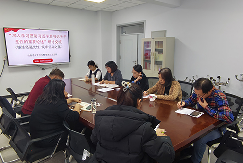 12月12日,我院动物遗传育种与繁殖教工党支部在动科楼408会议室开展“深入学习贯彻习近平总书记关于党性的重要论述”研讨交流会,本次会议由我院党委书记包国荣出席,动物遗传育种与繁殖教工党支部全体党员参加,支部副书记王志英主持。