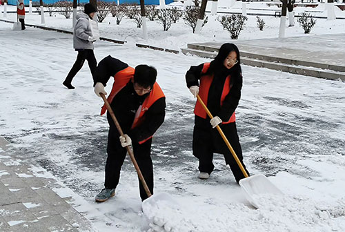 我院本科生第一党支部与本科生第二党支部提前统筹部署,明确分工、细化任务,领取扫雪除冰工具,划定清扫区域。期间,支部党员分工协作、配合默契,迅速投入到扫雪融冰工作中,不仅有效清除了校园积雪积冰,保障了师生出行安全,更将“感党恩、听党话、跟党走”的政治信念转化为服务师生、奉献校园的实际行动,在寒风中勾勒出一道靓丽的红色风景线,充分展现了学生党员的先锋模范作用。