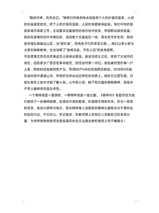 以榜样为镜,向初心而行,本次《榜样10》专题节目以鲜活的事迹诠释初心使命,用坚定的信仰彰显担当力量,为我院全体党员树立了立心立行、见贤思齐的时代标杆,让全体党员接受了一次深刻的思想淬炼和精神洗礼,我院各党支部将把榜样精神转化为履职奋进的实际行动,引领党员躬身实践、笃行实干,在新征程上彰显新担当、书写新答卷。