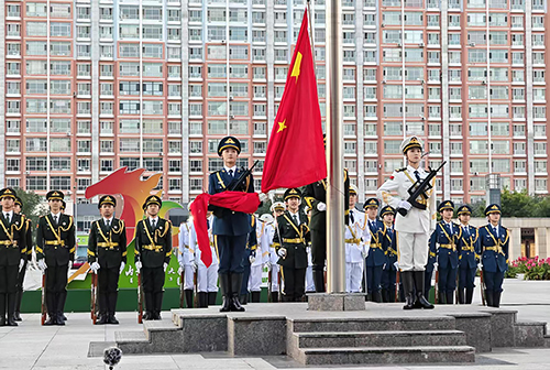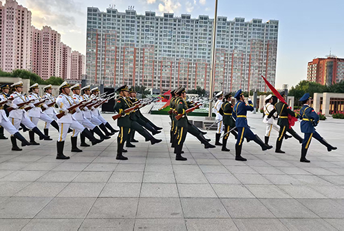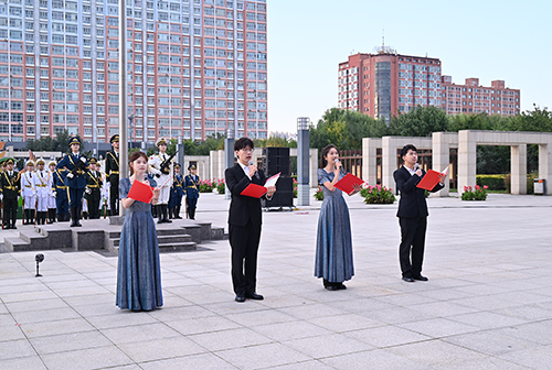 仪式中,任祯和马利娜详细介绍本次升旗仪式的流程。随后,我校国旗护卫队队员身着笔挺军装,迈着铿锵有力的步伐走向升旗台,伴随着庄严的《义勇军进行曲》奏响,五星红旗在朝阳下冉冉升起,全体师生肃穆而立,行注目礼,歌声与朝阳一同点燃了我院师生心中的爱国豪情。