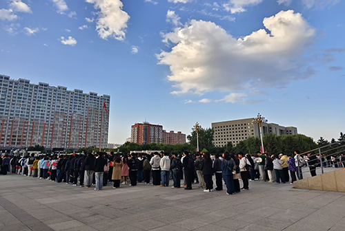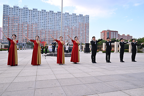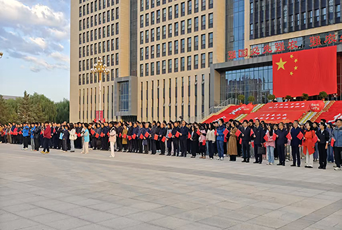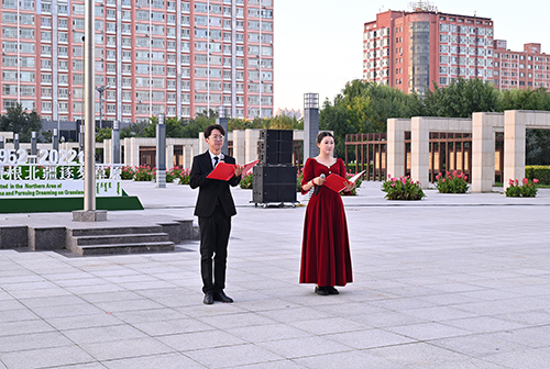 仪式最后,索伦歌艺术团赤纳合唱团演唱《英雄赞歌》,激昂的旋律歌颂着革命先烈的无畏精神,随着《我和我的祖国》的熟悉旋律响起,师生们挥舞着手中的国旗,现场汇成一片红色的海洋,氛围热烈而感人。