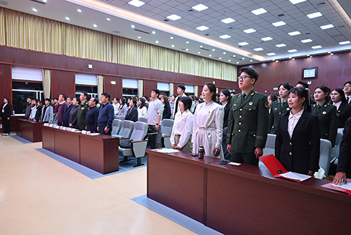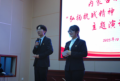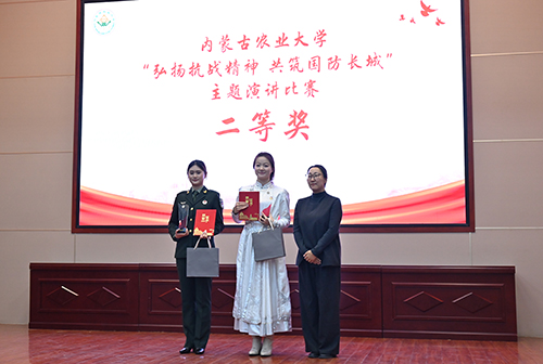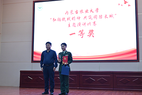 为深入学习贯彻党的二十大精神,扎实推进新时代全民国防教育,引导青年学子将爱国情、强国志、报国行融入血脉之中,10月29日,我院在8号教研楼承办内蒙古农业大学“弘扬抗战精神,共筑国防长城”主题演讲比赛,本次比赛由呼和浩特市赛罕区区委常委、人民武装部政治委员孙继斌,我校党委委员、宣传部部长郭松朋,团委书记海日罕,教务处处长姚利宏,党委学生工作部部长、武装部部长郭文瑞出席并担任评委,我院党委书记包国荣出席。