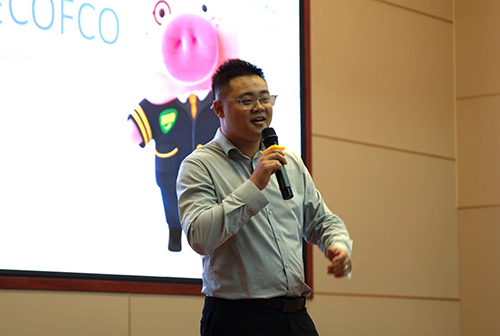 会议伊始,齐童播放企业宣传片,并详细介绍中粮集团的行业定位与全球布局,使同学们对中粮家佳康(赤峰)有限公司有了初步了解。随后,齐童着重围绕产业升级实力、人才发展保障、全产业链布局和管培生培养方案等方面展开阐述,并分享我院优秀校友的晋升路径与成长案例,让同学们更直观地感受到职业发展前景。期间,齐童以问答形式与我院同学深入互动,同学们积极举手,主动就职业规划等问题提问,现场交流氛围热烈。最后,齐童对本次会议进行总结,他诚挚邀请同学们加入团队,期待同学们能将个人职业理想与企业发展目标深度契合,在实干中锤炼能力、实现自我价值,与公司并肩同行、携手共创行业新未来。