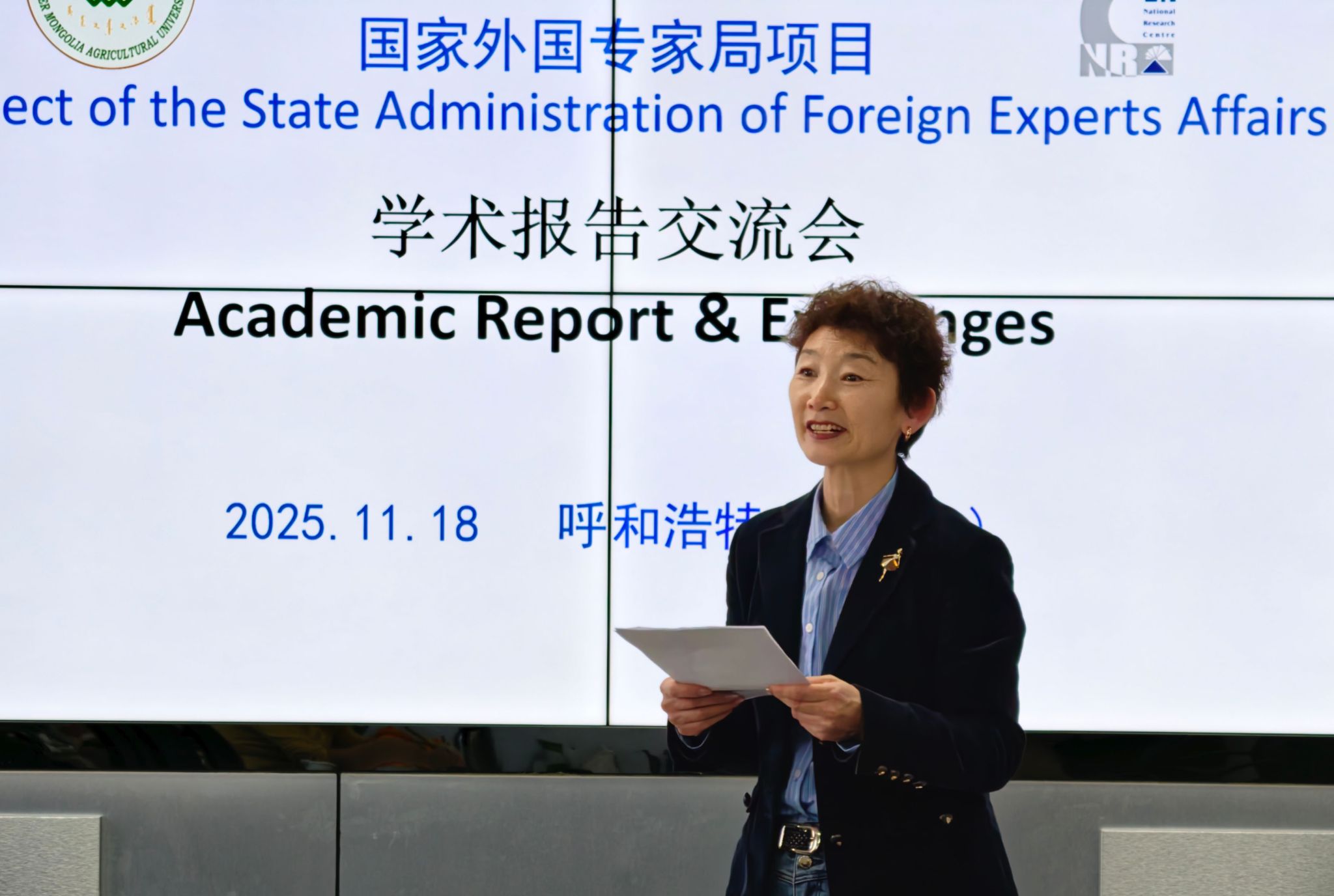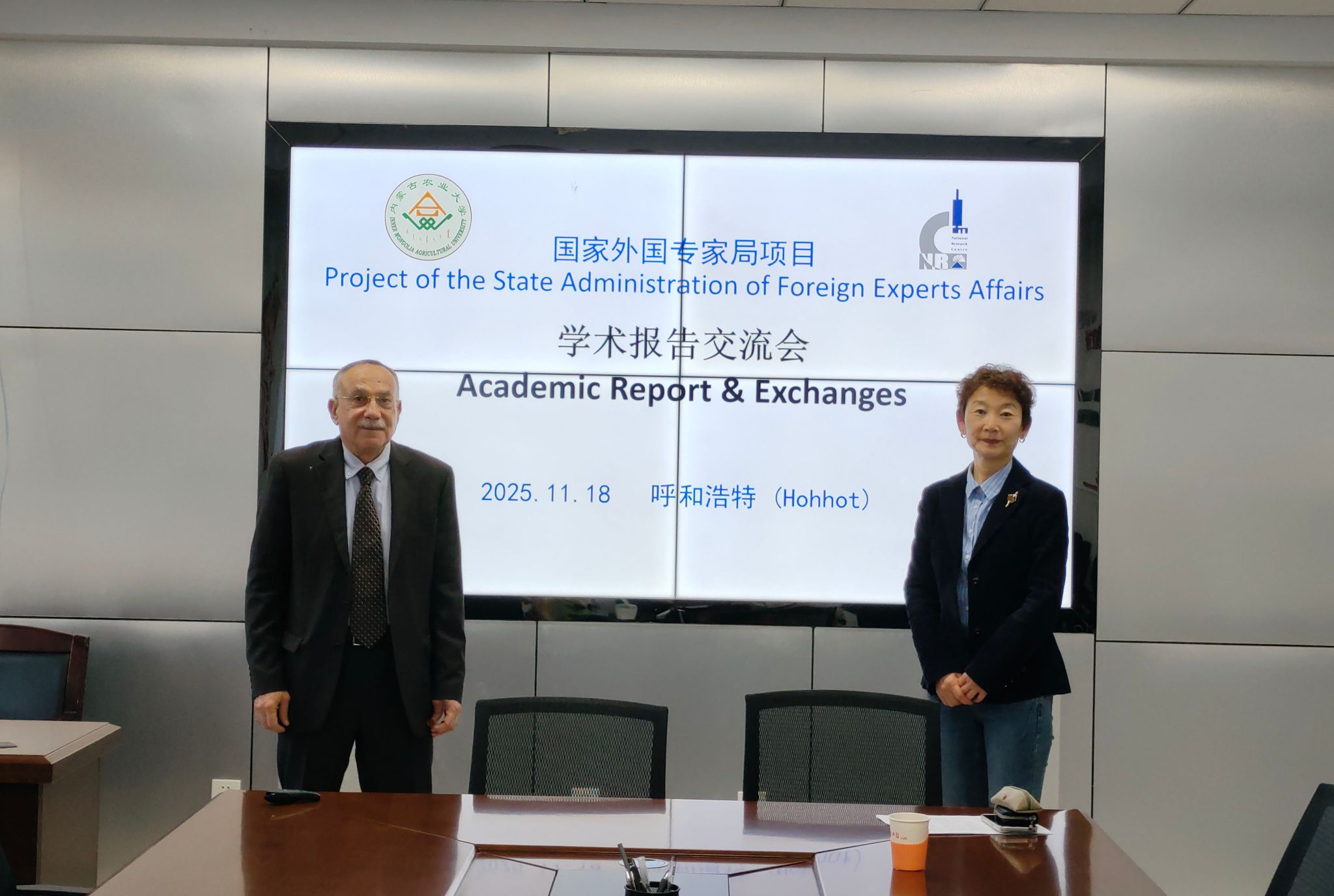 2025年11月18日,由国家外专家局项目主持人娜仁花教授牵头组织的学术报告会在我院顺利举行。本次报告会特别邀请到埃及国家研究中心Ahmed Sabry S.Abdoun教授担任主讲,我院副院长苏蕊教授、动物遗传育种与繁殖系系主任王志英副教授、副系主任杜明博士及众多研究生共同出席,娜仁花教授主持。