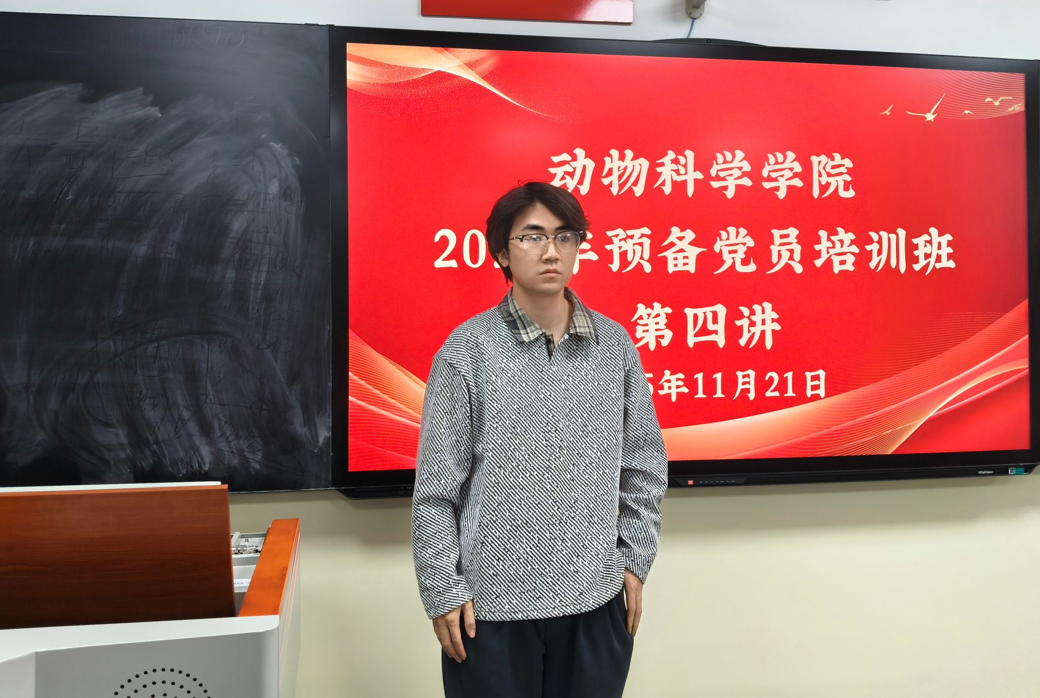 为引导我院预备党员深刻理解“铸牢中华民族共同体意识”的核心内涵,夯实民族团结思想基础,11月21日,我院在勤学楼304教室开展2025年预备党员培训班第四讲,本次课程由我院全体预备党员参加,党员服务站成员林卓岩主持。