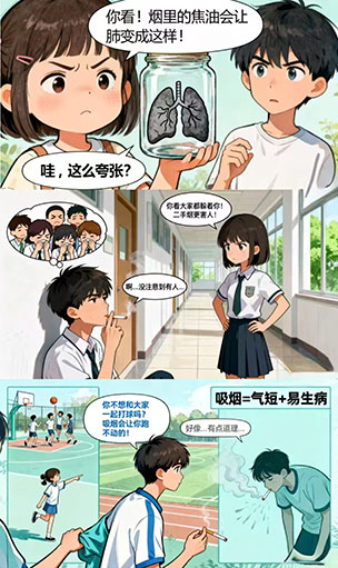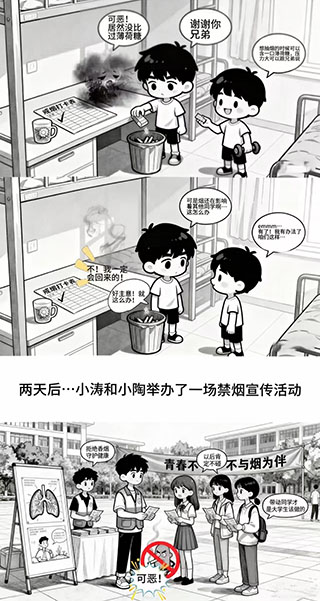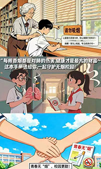 为引导我院学子树立健康生活理念,涵养文明素养,我院特举办“无烟青春,健康同行”禁烟宣传主题活动。同学们以漫画为媒,将对烟草危害的深刻认知与对健康未来的美好期许融入画面,充分彰显了我院学子强烈的社会责任感与深厚的人文关怀,现将优秀作品予以展示