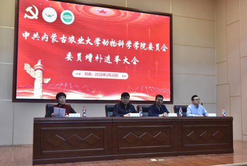 为进一步夯实我院党委建设根基,持续提升党组织凝聚力,切实筑牢坚强战斗堡垒。3月20日,我院在八号教研楼召开中共内蒙古农业大学动物科学学院委员会委员增补选举大会,本次会议由我院党委书记张燕军,党委委员李大彪、胡晓燕、张心壮出席,我院全体师生党员参加,胡晓燕主持。